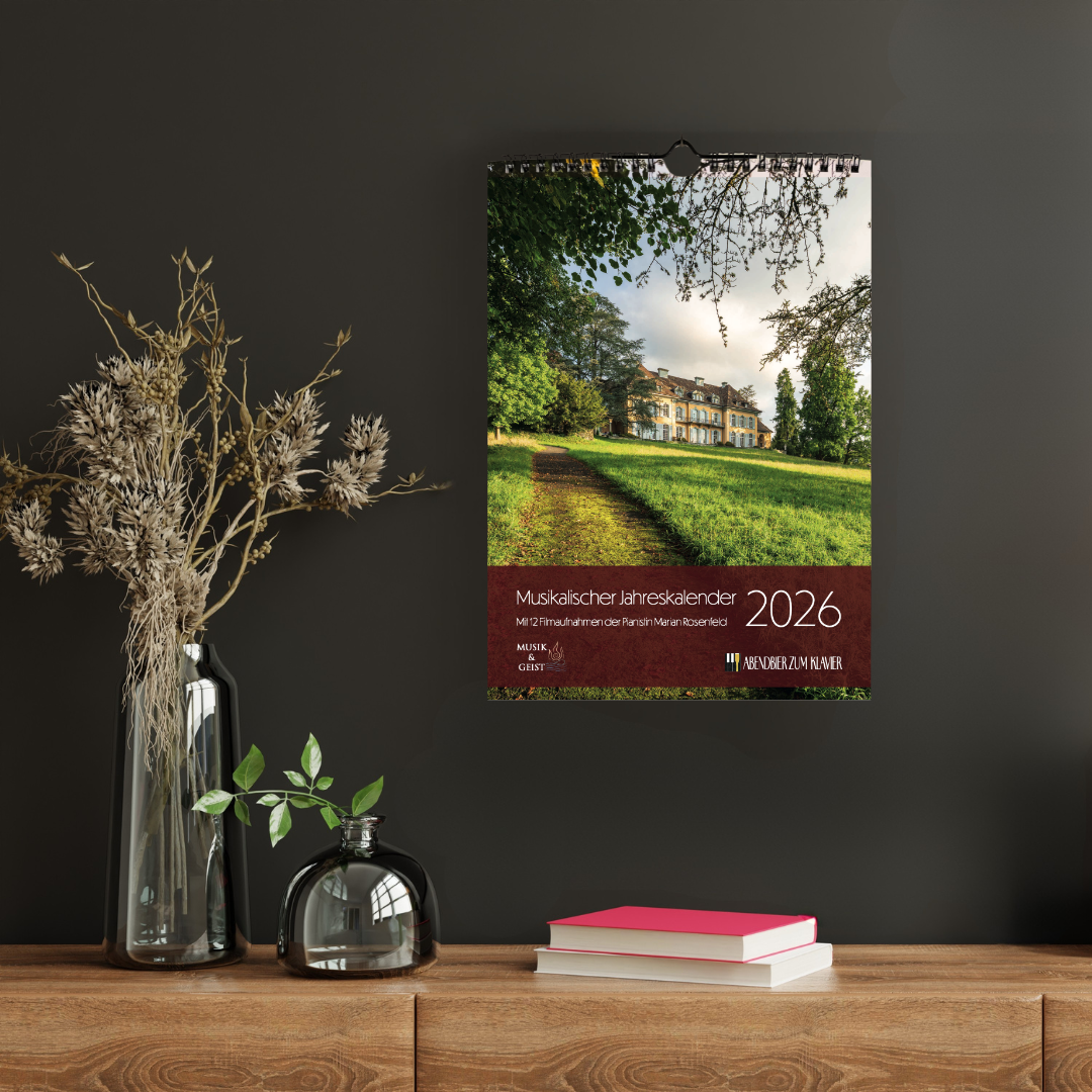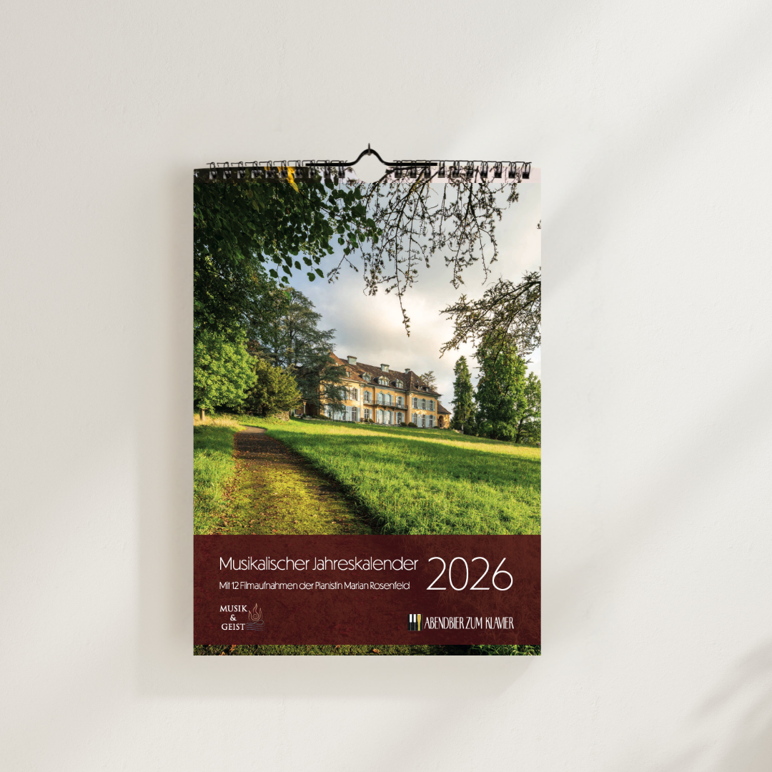 Erleben Sie 12 Monate Musik & Bilder in einem: Jede Kalenderseite zeigt die St. Charles Hall in stimmungsvollen Aufnahmen – Haus und Park, vom Fotografen zauberhaft eingefangen. Und: Hinter jedem Monat steckt ein 5-minütiges Klavierkonzert mit persönlichen Worten von Marian Rosenfeld – vor Ort in den Räumen der St. Charles Hall gefilmt.